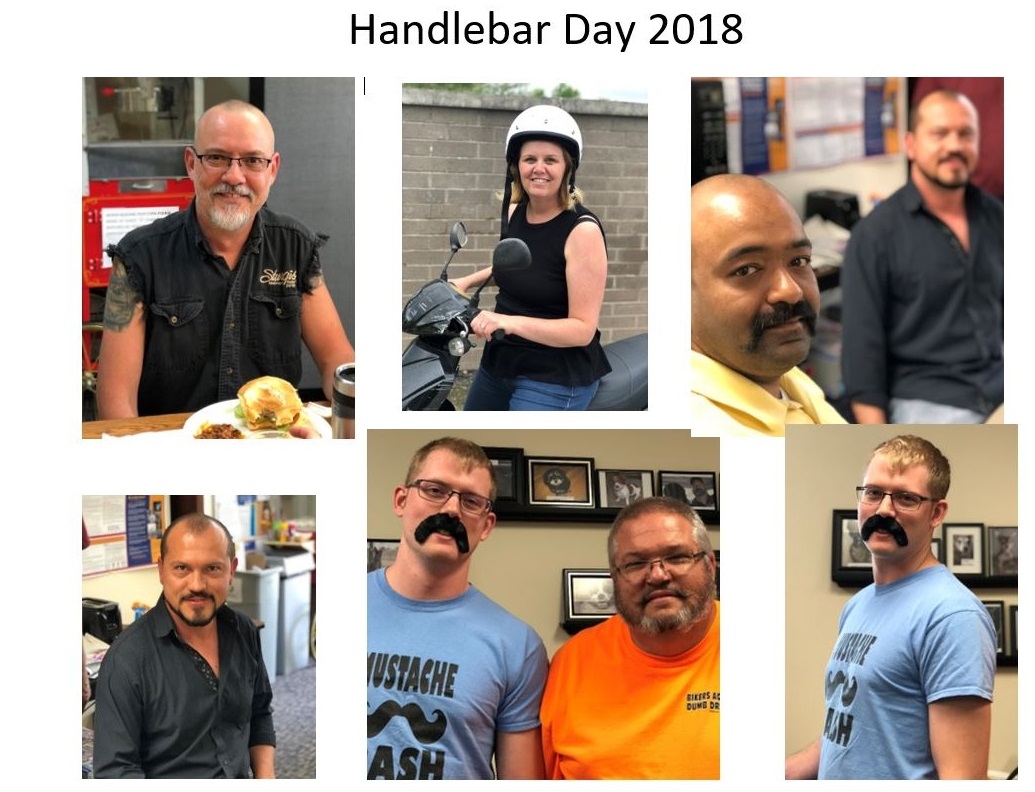 What better way to celebrate the first day of summer, than with a grill out and…. Handlebars? Genova employees did just that last week – celebrating all thing handlebar – motorcycles, bicycles, moustaches. The threat of rain deterred most from riding their two-wheeled vehicles, but the moustaches were out in full force. Genova provided the meat for grilling and employees shared side dishes. The breakroom was full with the smell of the grill drawing everyone together to enjoy the meal. Maybe next year the weather will cooperate so handlebars of all varieties will be represented.